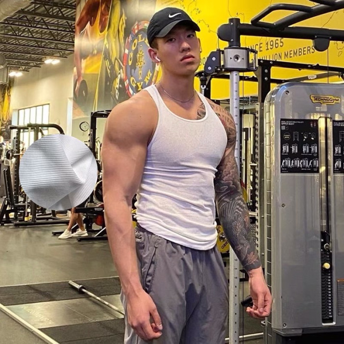 耿浩倫加粗螺紋白色背心男緊身肌肉健身吸汗打底速度與激情9gymog