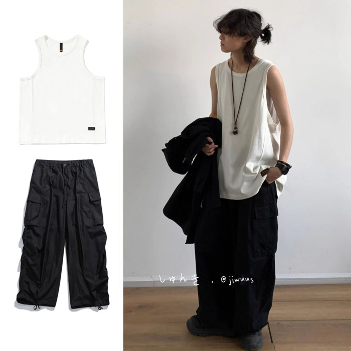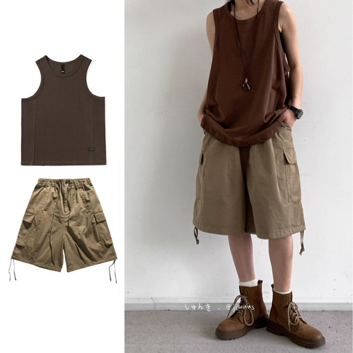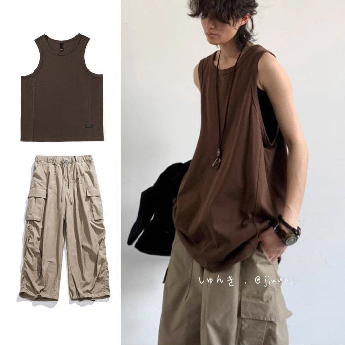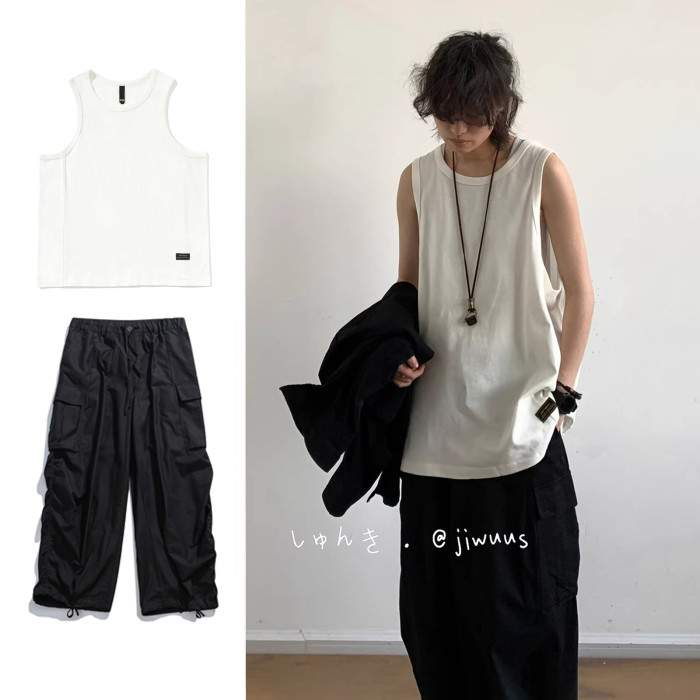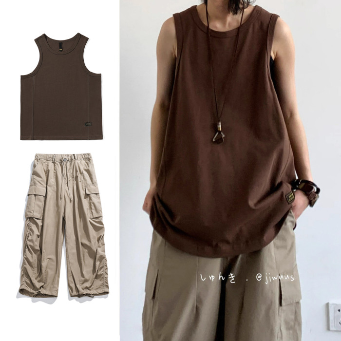 兩件裝/單件日系復古純色基礎款背心男女寬松純棉百搭無袖打底衫