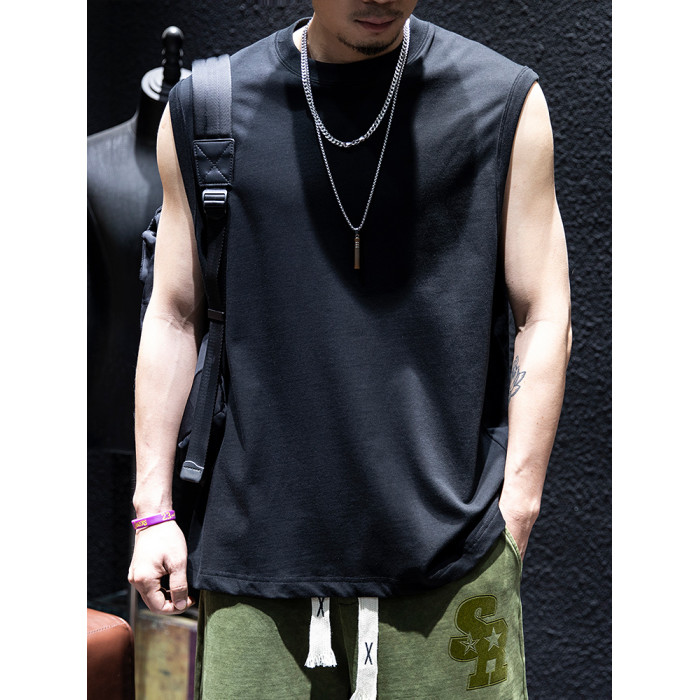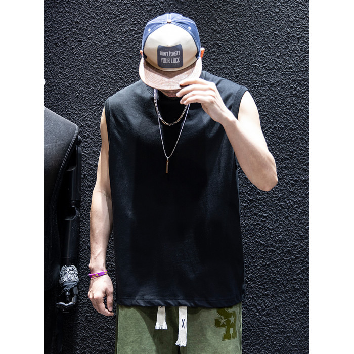 純色純棉無袖t恤男夏季寬松潮牌ins坎肩短袖男生潮流百搭休閒背心