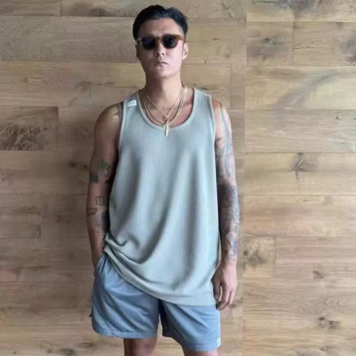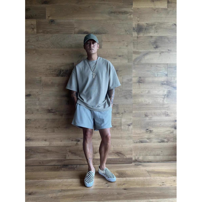 MADNESS餘文樂24SS雙面華夫格圓領小領口短袖T恤背心運動男士夏季