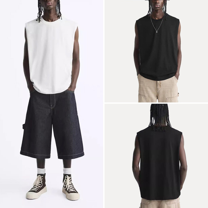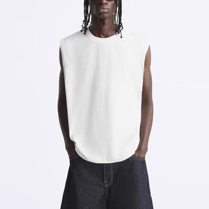櫃219!春季新款男裝百搭休閒圓領無袖寬松T恤背心 0722410