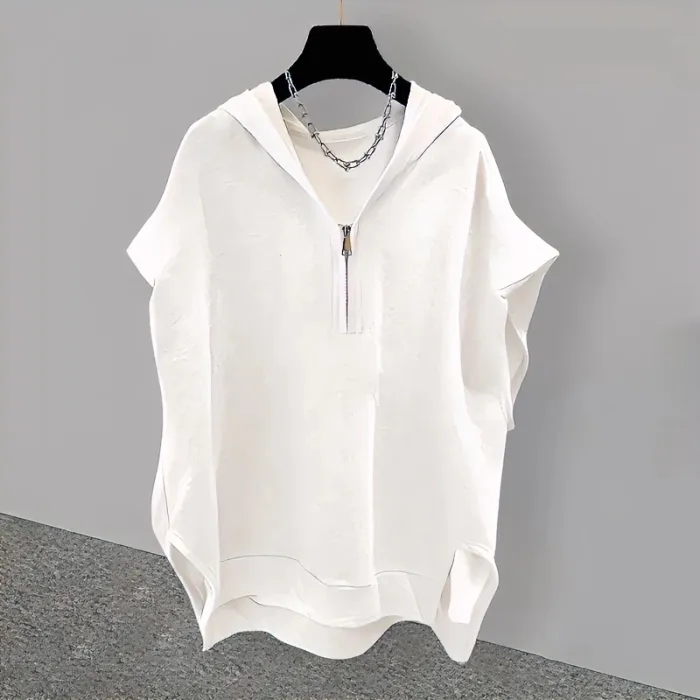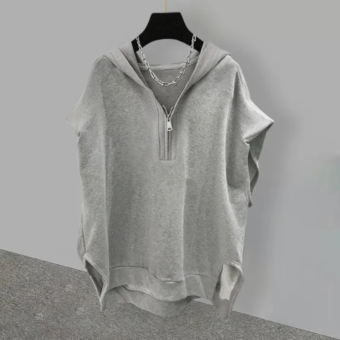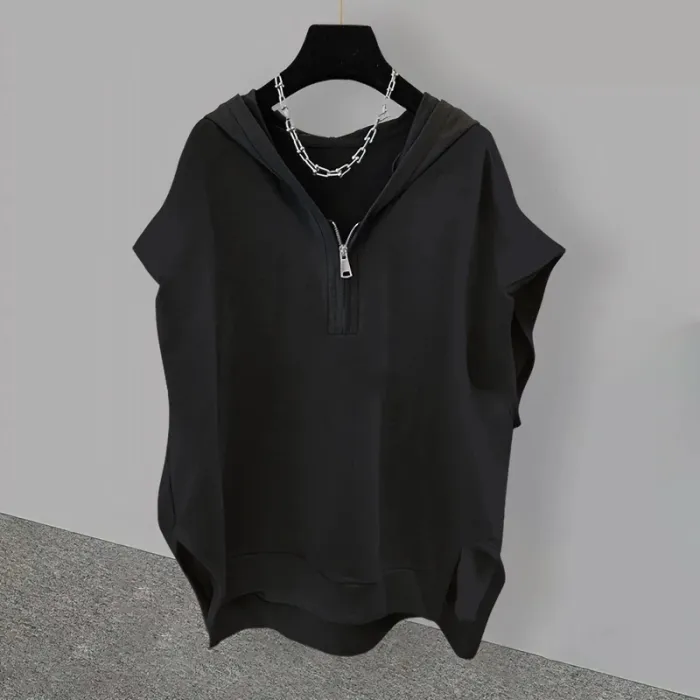 倉石一樹純色拉鍊連帽T恤男士夏季帶帽坎肩背心韓版百搭大碼寬松