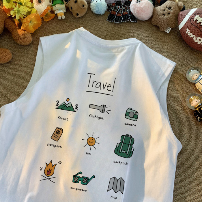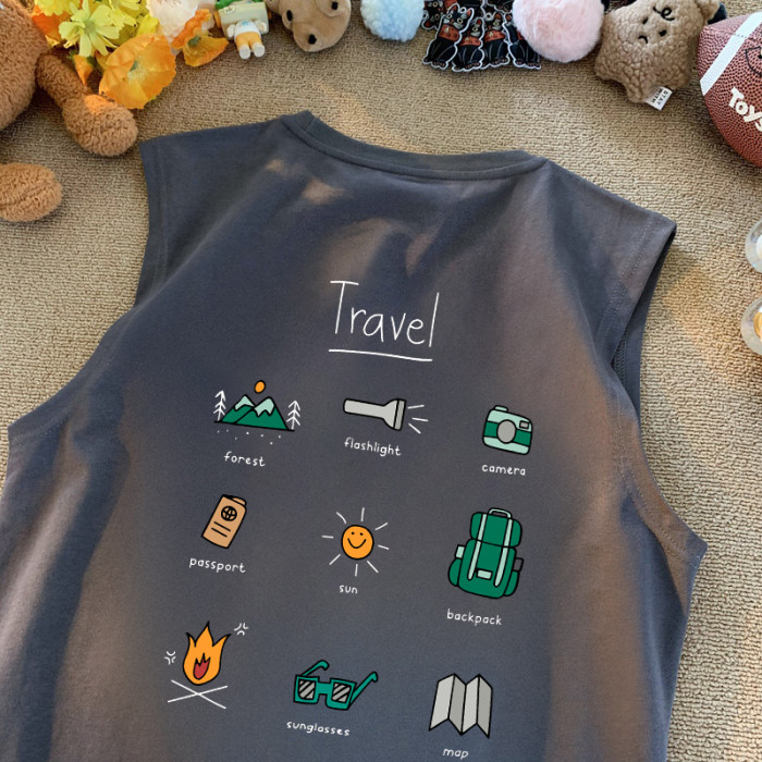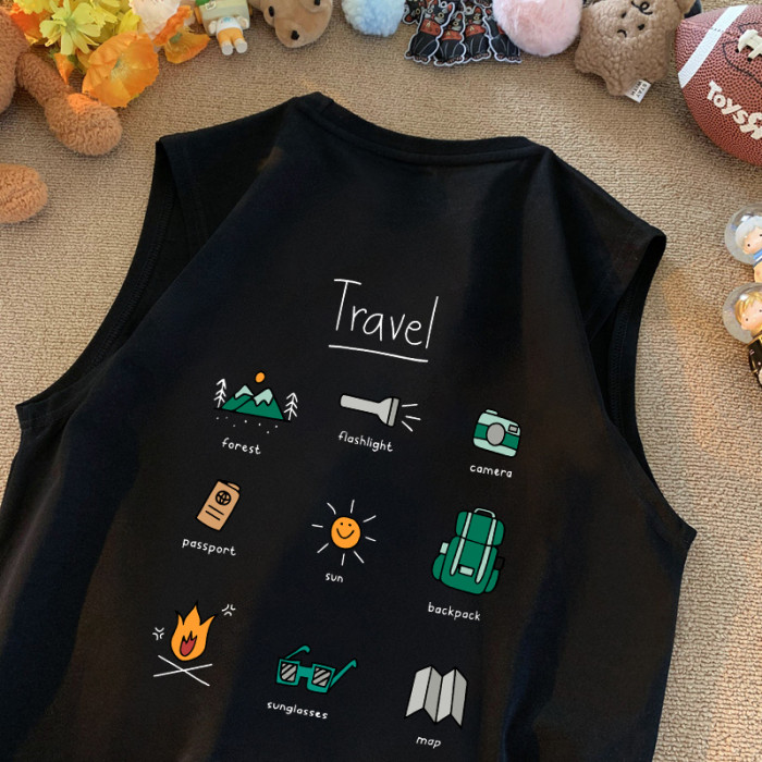 夏季美式小衆潮流露營印花坎肩背心男女寬松百搭純棉220g無袖t恤