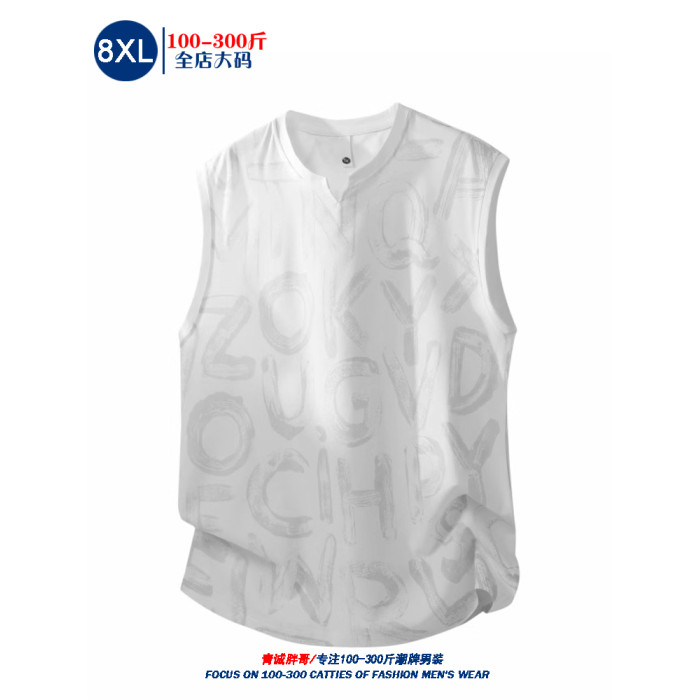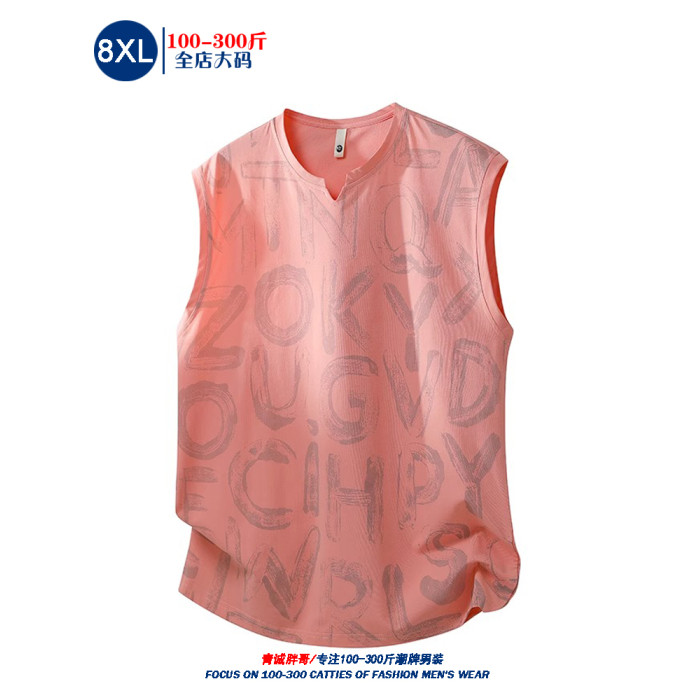 青誠胖哥大碼V領背心男夏季寬松休閒加肥加大胖子運動汗衫無袖T恤