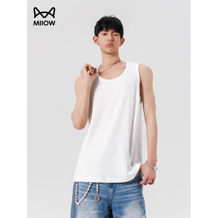 貓人夏季男士冰絲背心寬松休閒無袖T恤運動健身籃球坎肩2025新款