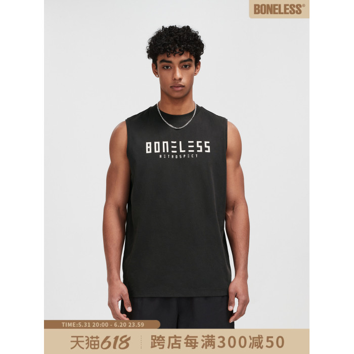 BONELESS基礎背心休閒透氣速乾涼感無袖T恤運動美式坎肩夏季