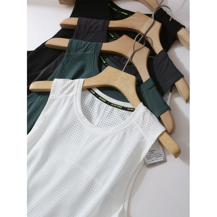 【蜂窩肌理!網眼速乾!】夏季男士戶外圓領運動健身透氣打底背心