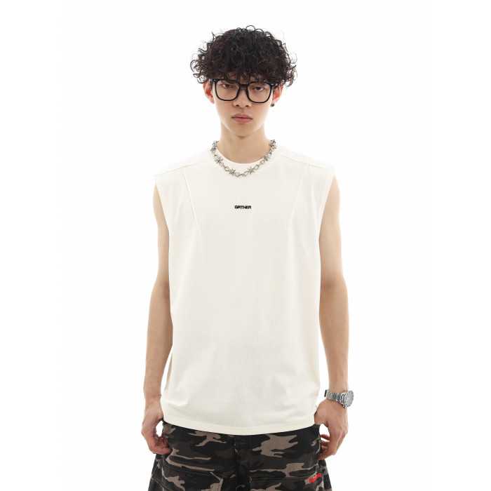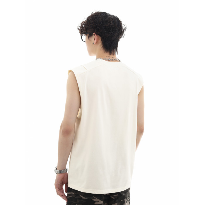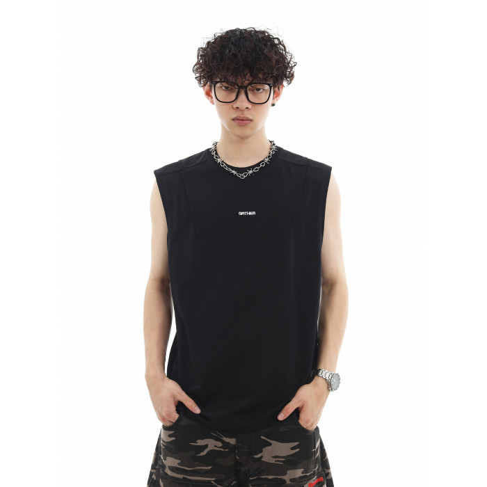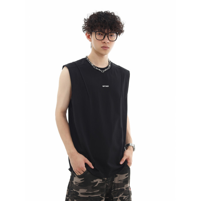 無袖T恤男生夏季潮牌透氣運動健身坎肩背心男士刺綉圓領休閒上衣