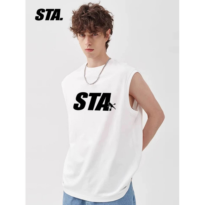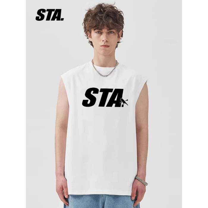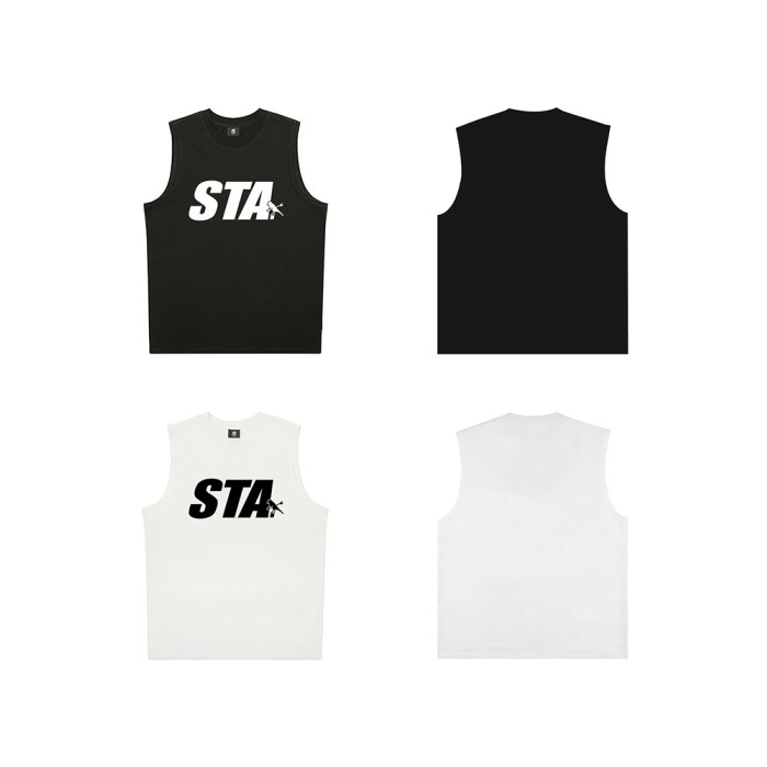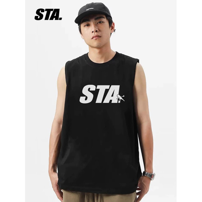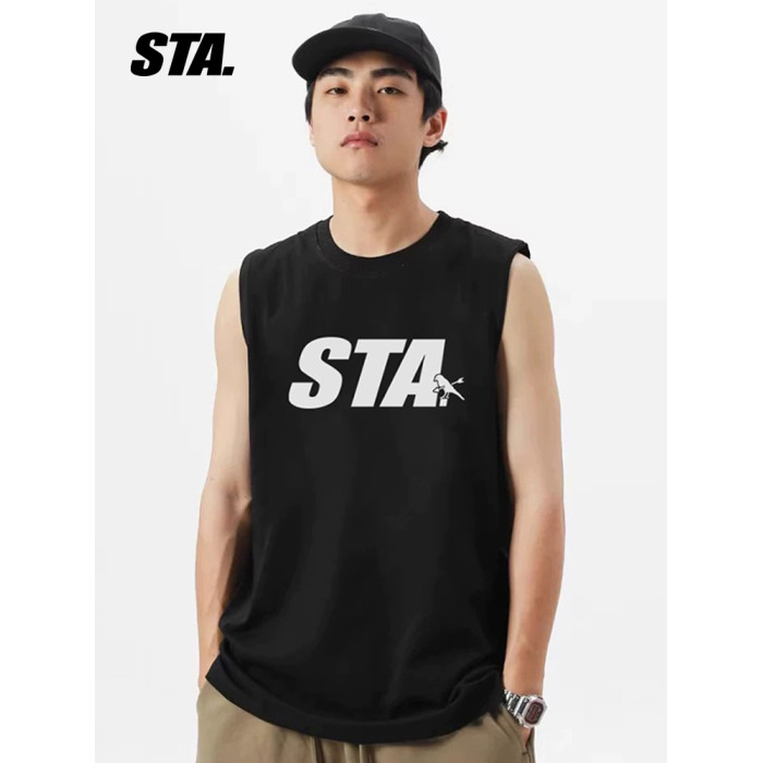 STA潮牌背心男女生圓領坎肩T恤純色夏季寬松運動透氣汗衫純棉體恤
