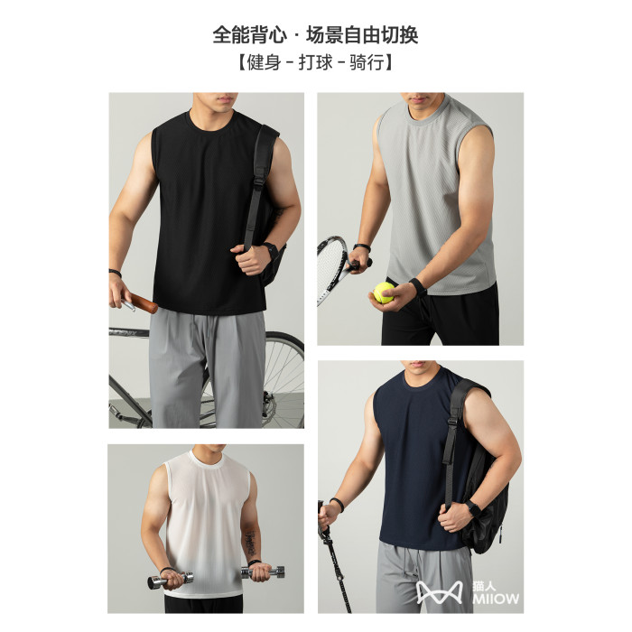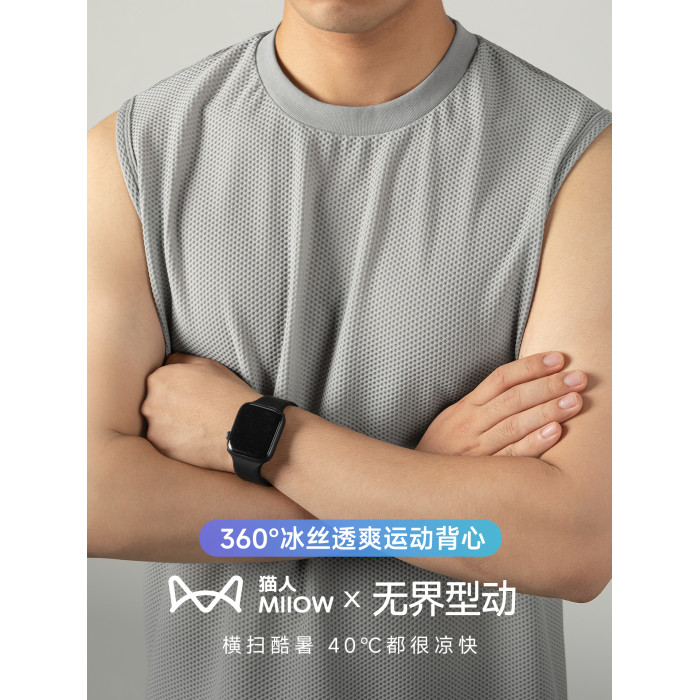 貓人【360°透爽】冰絲錦氨速乾背心男士鏤空輕薄運動健身坎肩