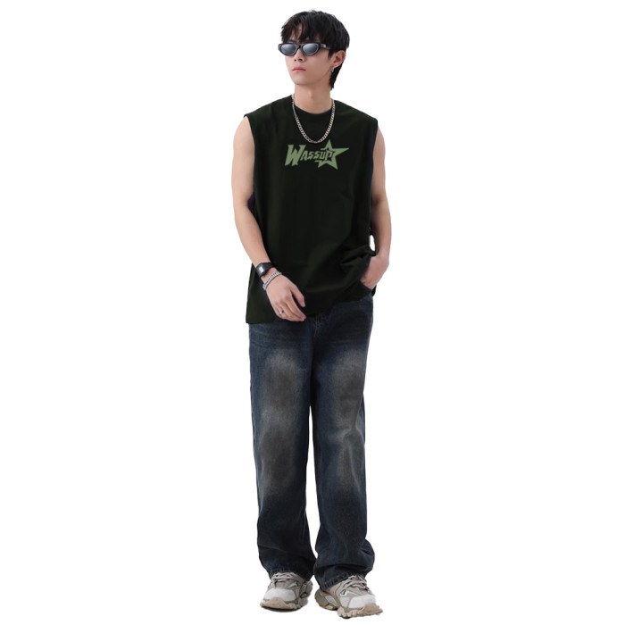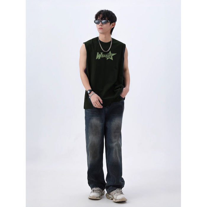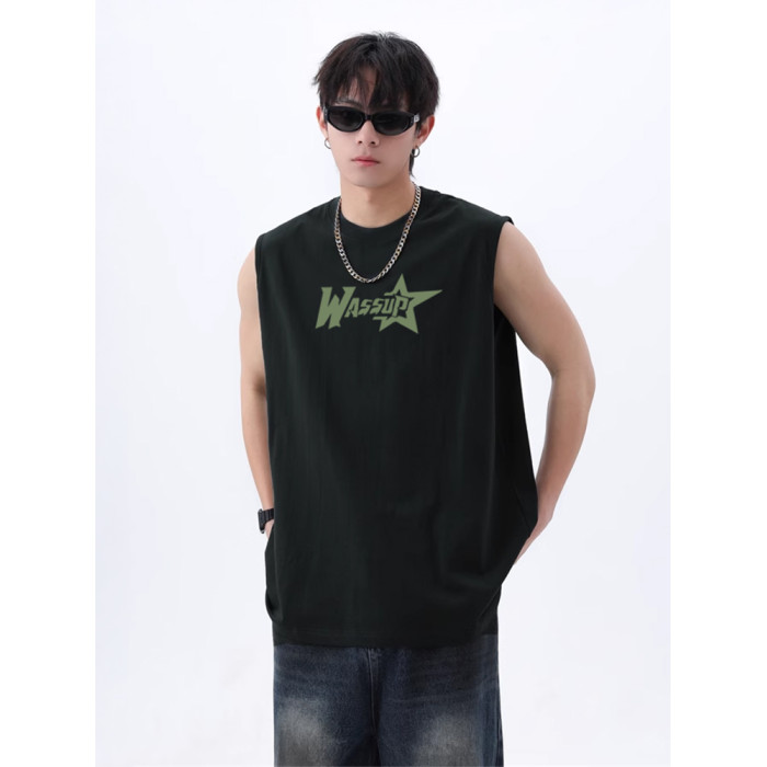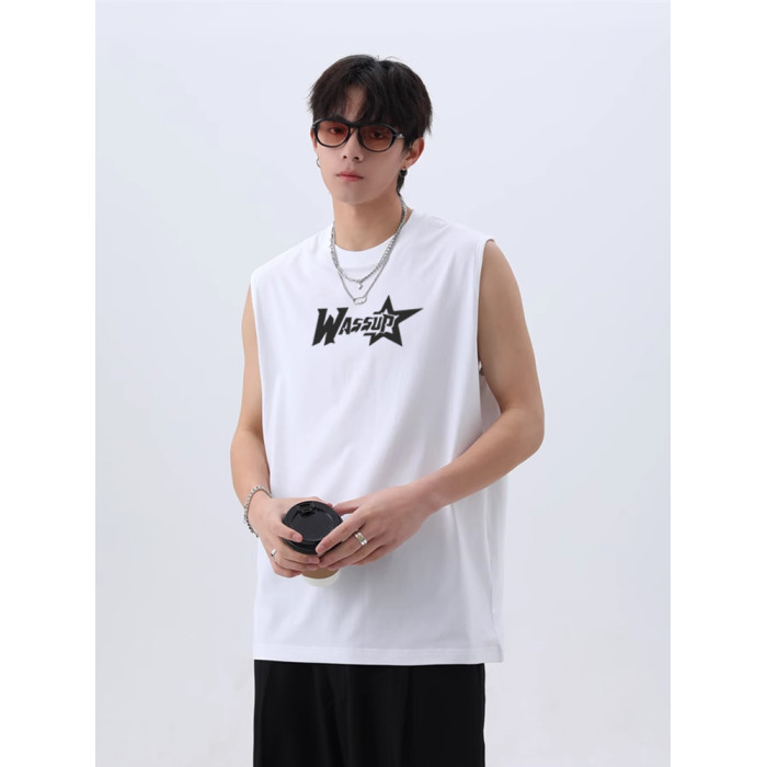 WASSUP無袖t恤男純棉背心夏季坎肩運動健身打底衫寬松大碼汗衫女