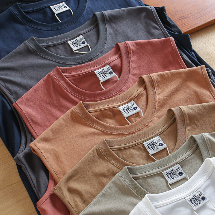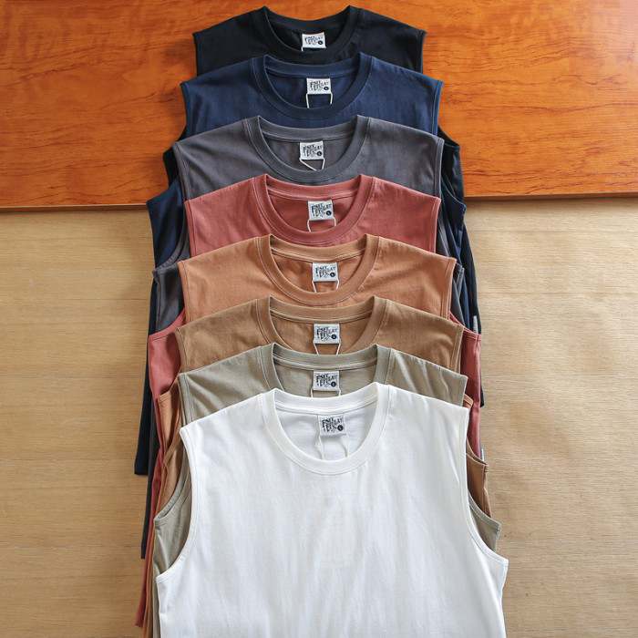寬松復古全棉水洗面料寬肩帶男士夏季運動休閒籃球坎肩圓領汗背心