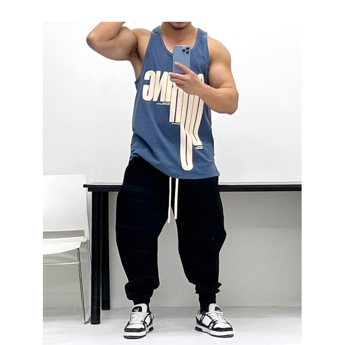 磨砂手感純棉好質感!肌肉男背心無袖T恤健身運動修身海灘寬松顯壯