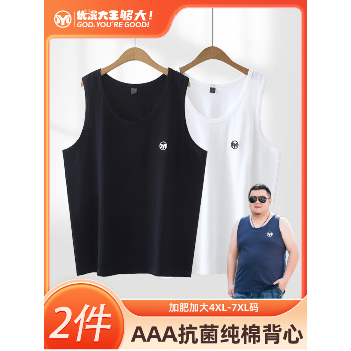 大碼男士背心夏季重磅純棉t恤無袖坎肩胖子加肥加大寬松打底汗衫