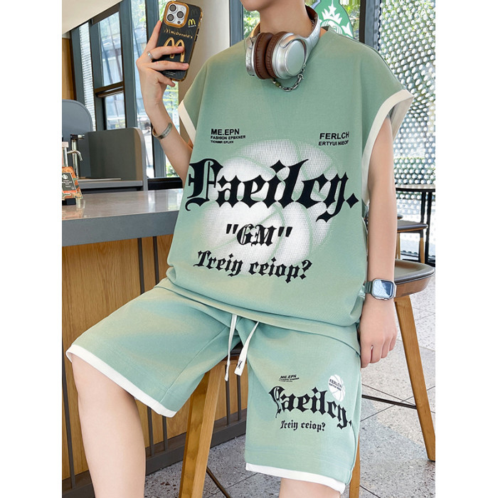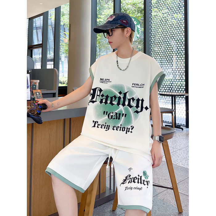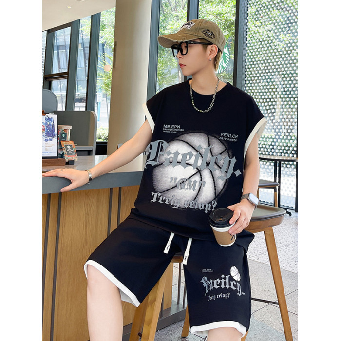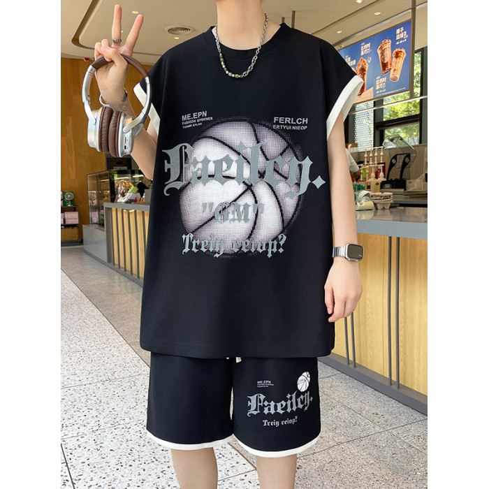 2025新款夏季冰絲無袖背心男孩青少年學生帥氣籃球服大童運動套裝