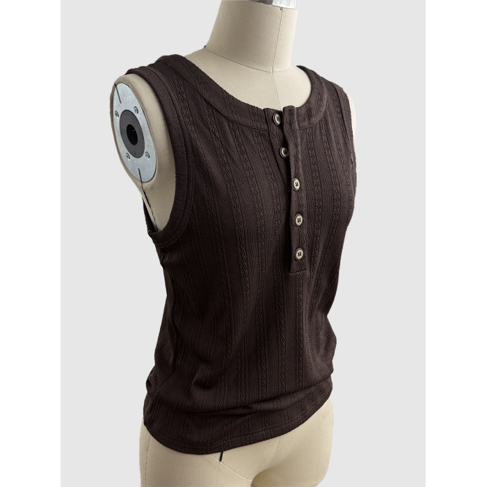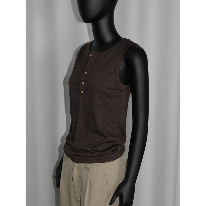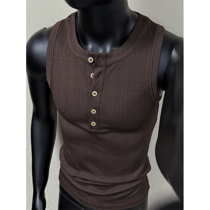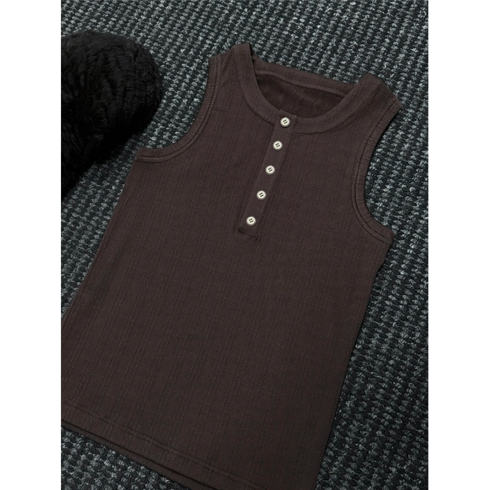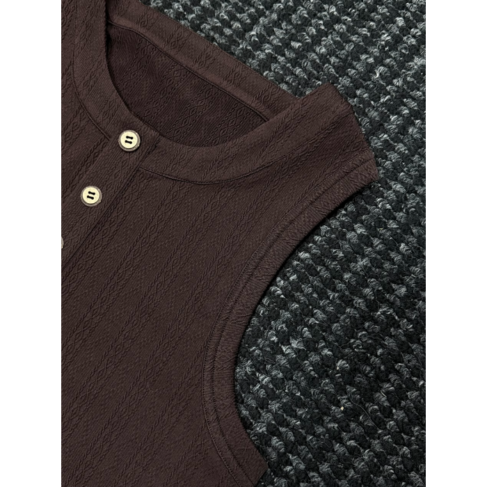 REVER REACT25ss絞花肌理修身背心夏季亨利領彈力內搭打底無袖