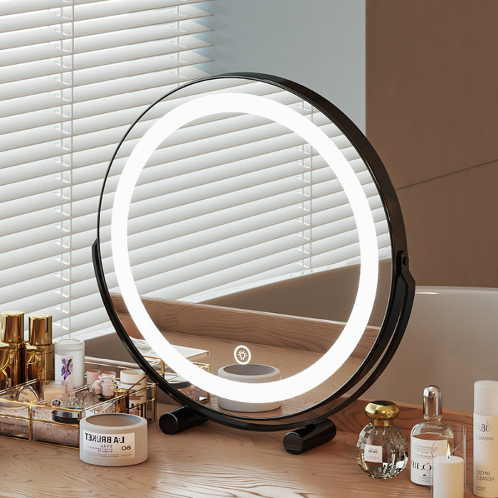 LED化妝鏡桌上型桌面補光智能臥室梳妝台鏡子可旋轉宿舍網紅少女心