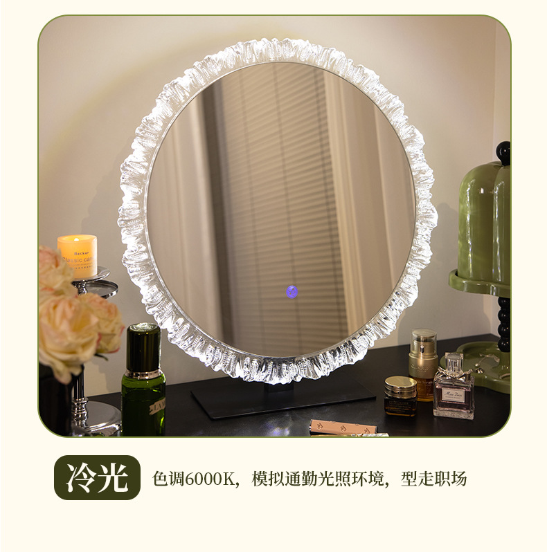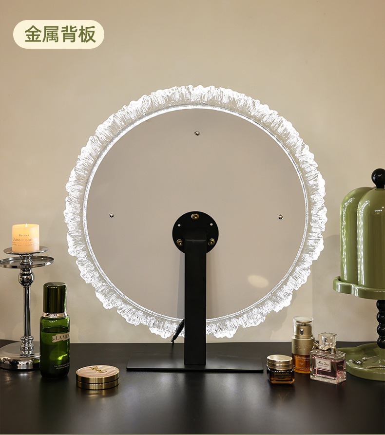 輕奢化妝鏡亞克力led帶燈高級梳妝鏡異形鏡梳妝桌上型桌面發光鏡子