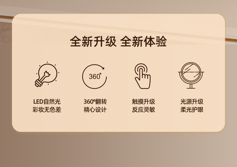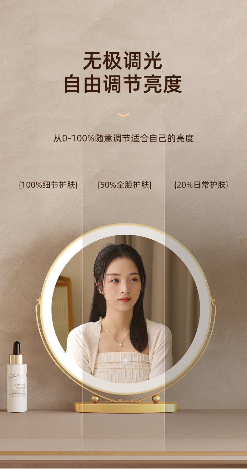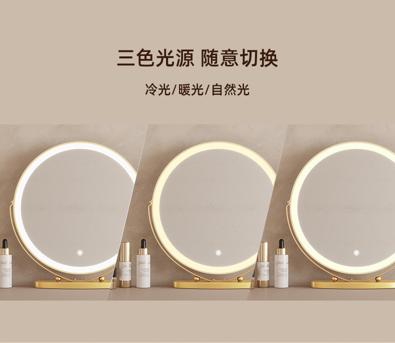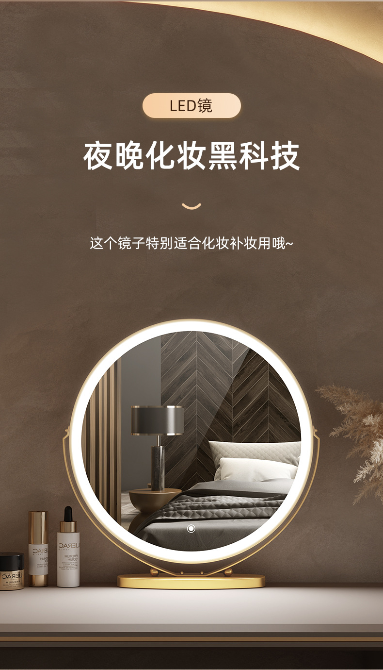 桌上型智能led化妝鏡帶燈光女生臥室房間桌面網紅奶油風梳妝台鏡子