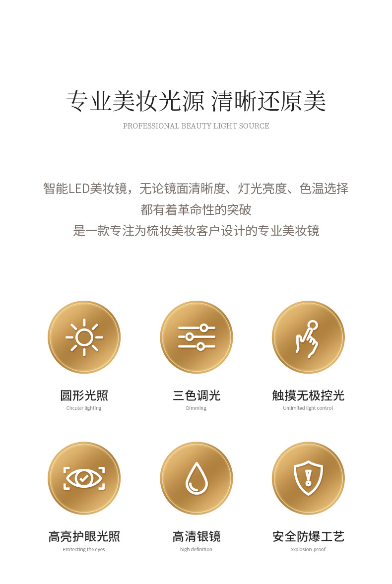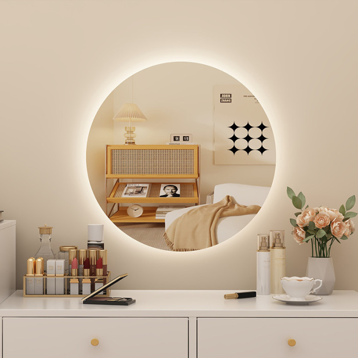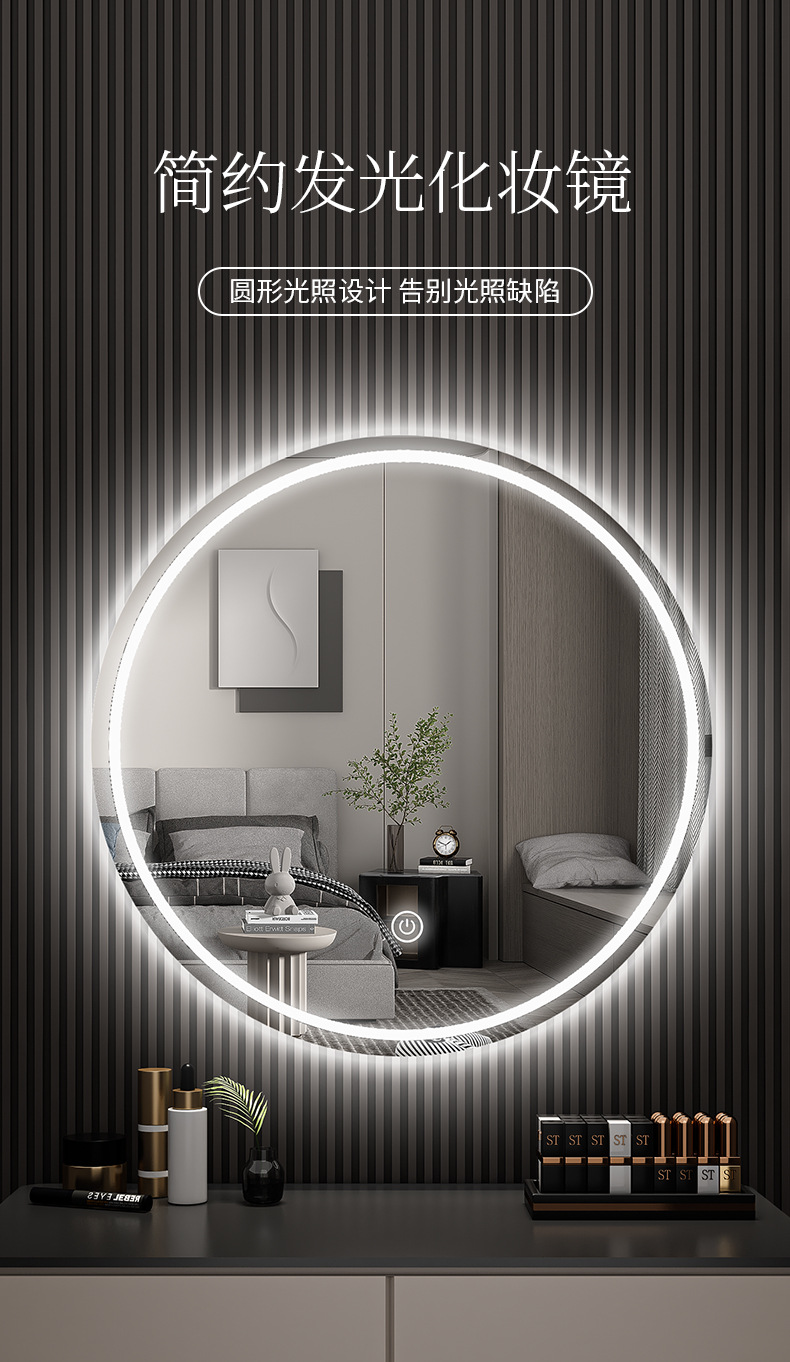 led帶燈圓形鏡子梳妝台鏡子化妝鏡壁掛主臥室梳妝鏡掛牆智能防霧