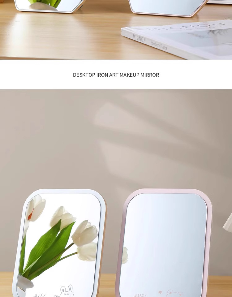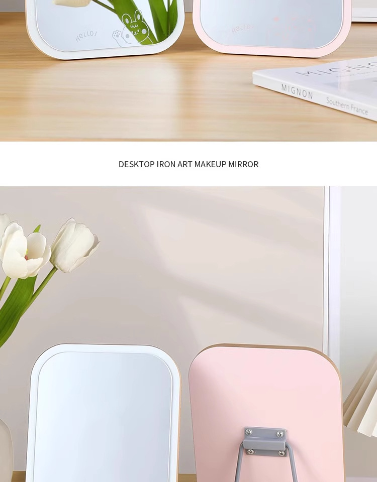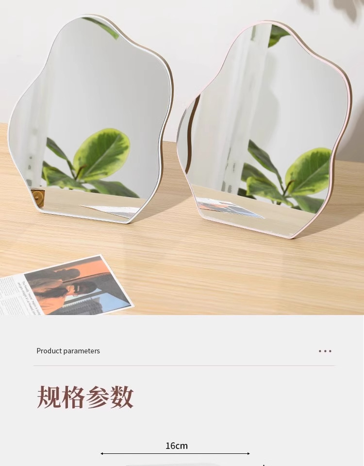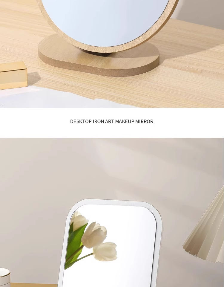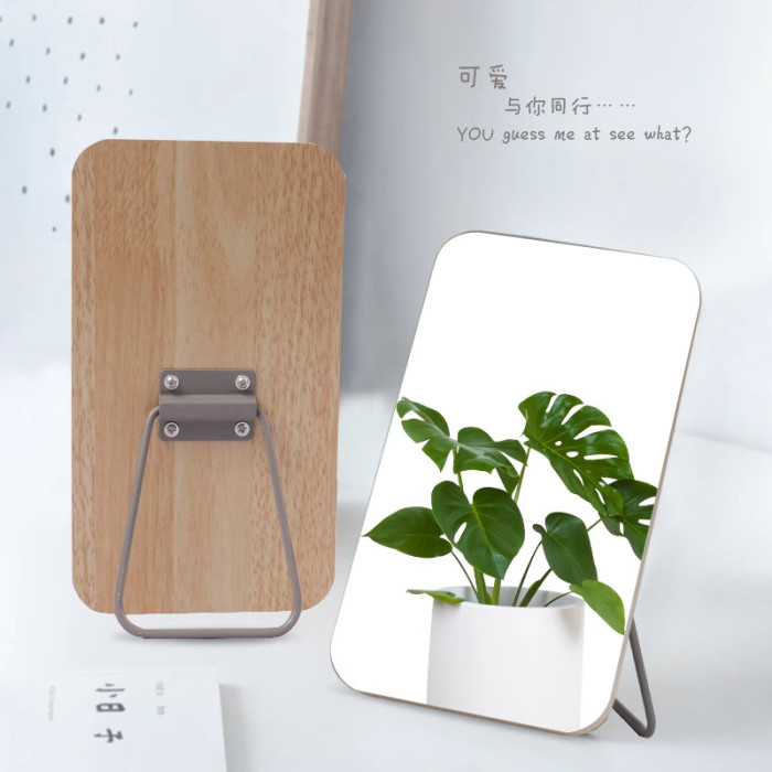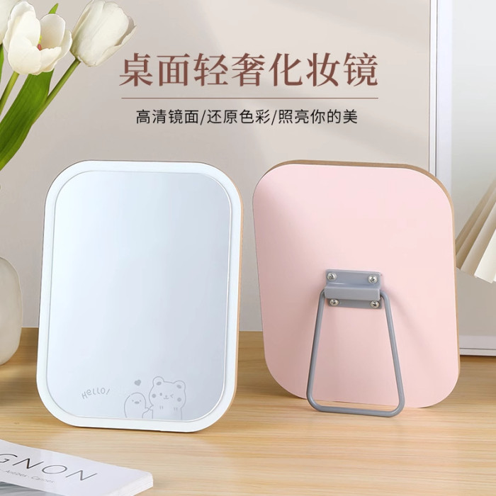 鏡子化妝鏡學生宿舍桌上型桌面木質小鏡子臥室梳妝台梳妝鏡高清可攜式