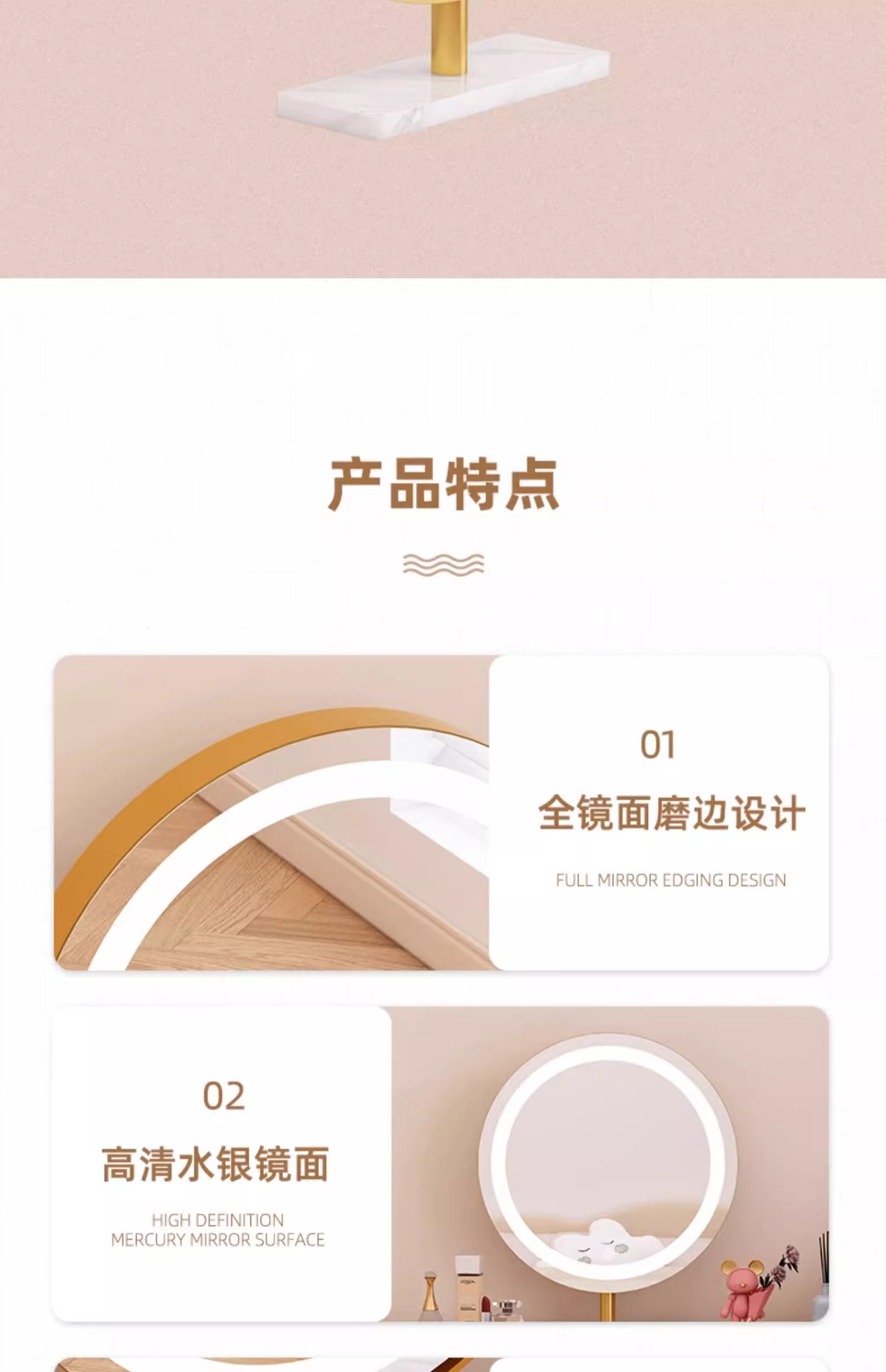 【旋轉款】50cm輕奢金+白色大理石【充電款】(三色光)