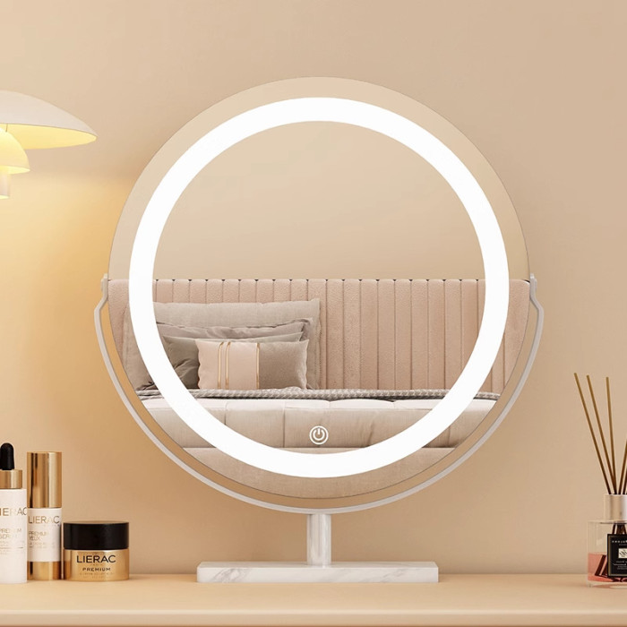 化妝鏡帶燈智能輕奢高級新款梳妝台鏡子臥室家用桌上型桌面