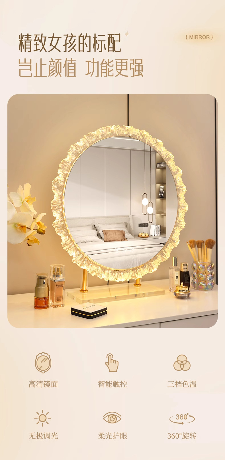 化妝鏡帶燈led異形桌上型桌面梳妝台鏡子旋轉梳妝鏡智能觸控美妝鏡