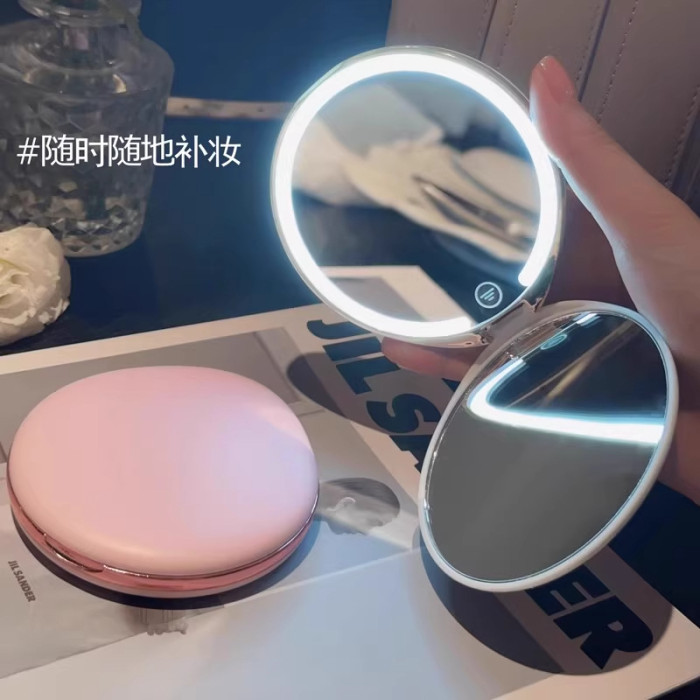 小鏡子隨身攜帶女簡約手持宿舍桌面可立學生可攜式折曡放大化妝鏡
