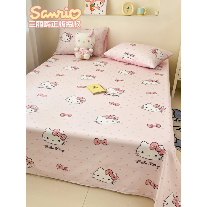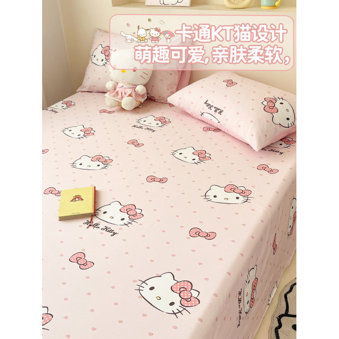 KT貓A類100精梳純棉床單單件防滑床笠全棉卡通兒童宿舍被單三件套