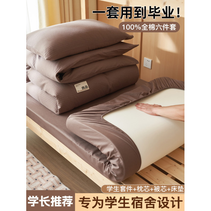 秋冬【0.9床六件套】(0.9床笠款三件套+枕芯+5斤棉花被+5cm床墊)