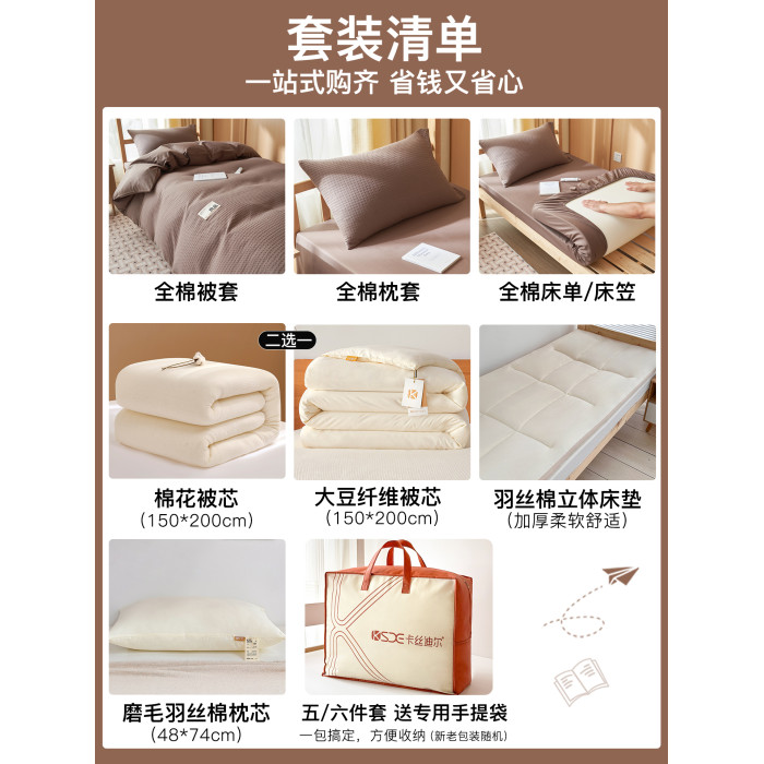 秋冬【0.9床六件套】(三件套+枕芯+5斤大豆被+5cm床墊)