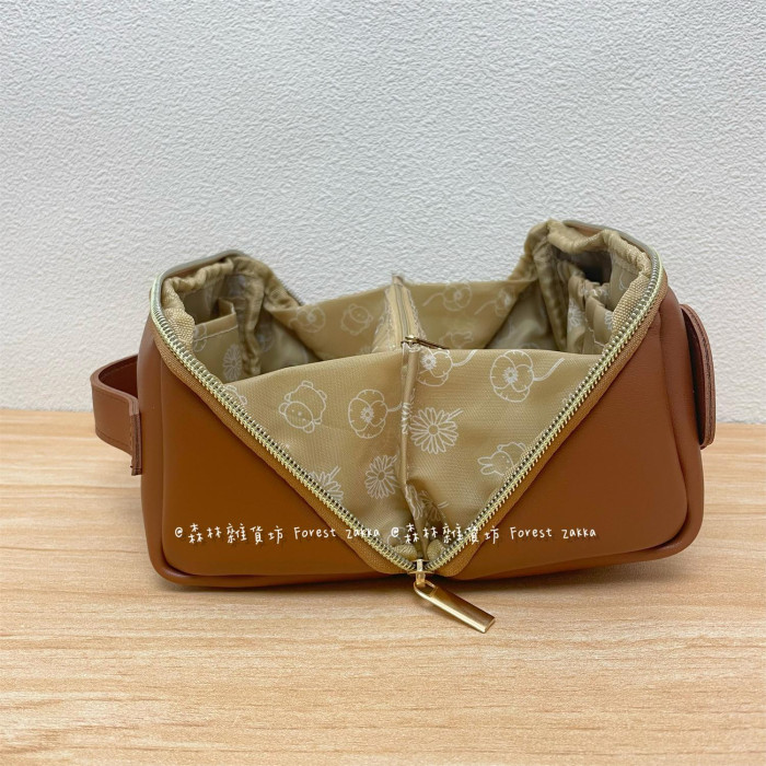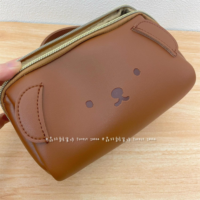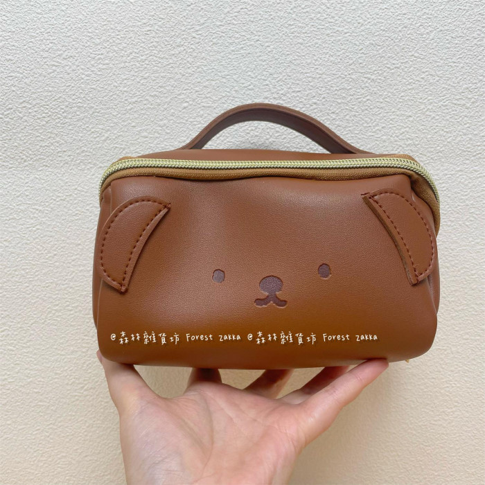 日系襍志同款boris鮑裡斯小熊手提PU化妝包 大容量旅行洗漱收納包