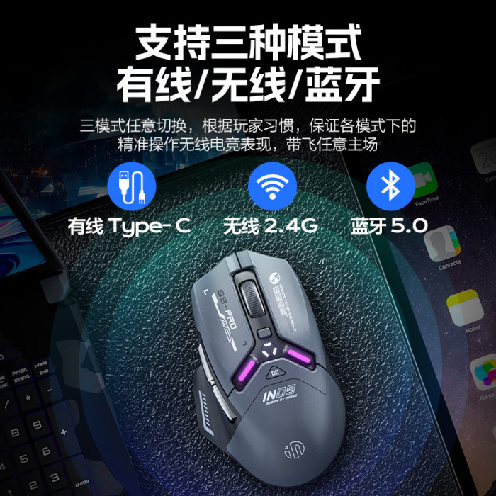 英菲克IN9PRO無線滑鼠藍牙有線三模電競遊戯宏機械筆記型電腦3395