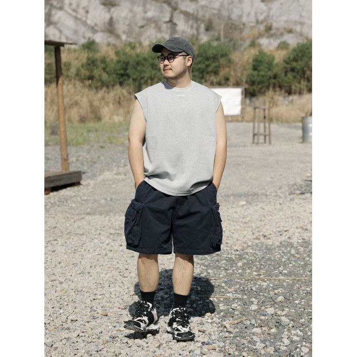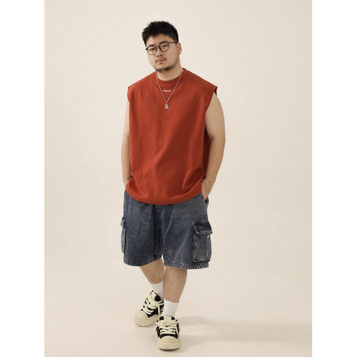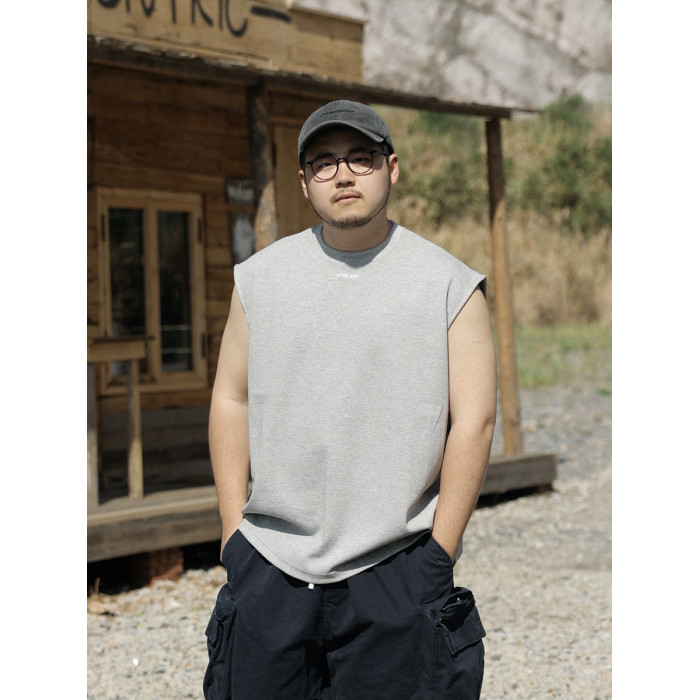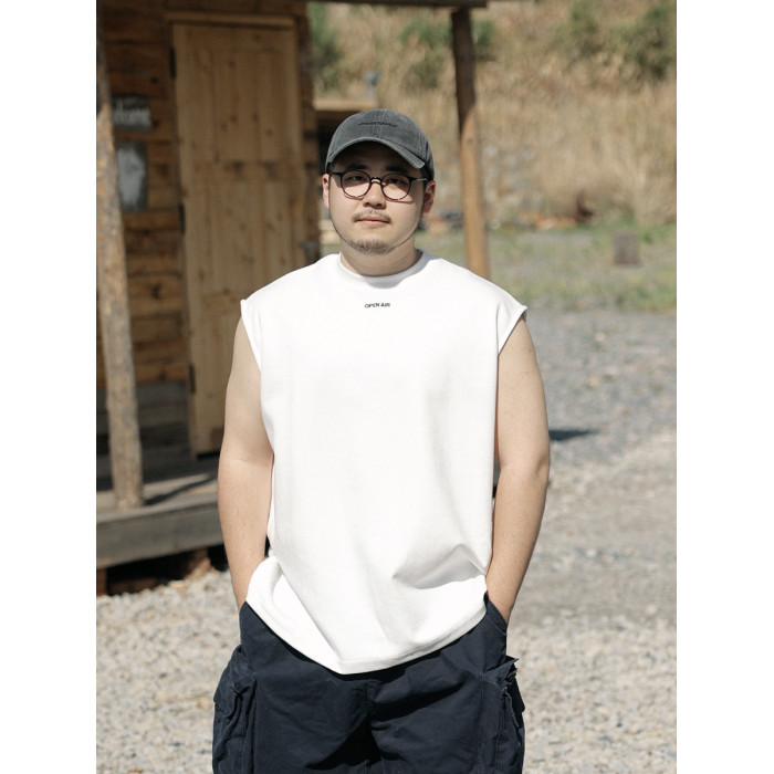 LIIISTORE2024夏款純色280g無袖T恤濶版小刺綉運動健身休閒背心男