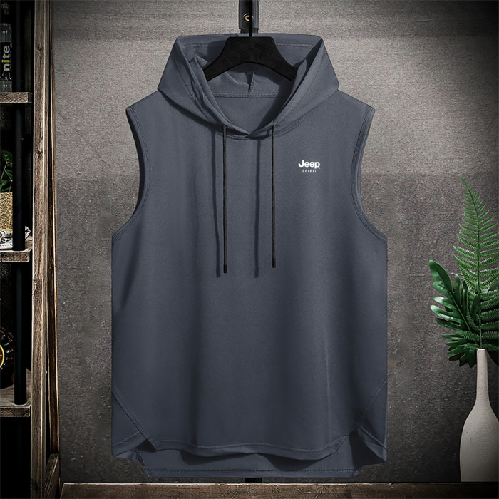 JEEP SPIRIT吉普連帽背心男士夏季新款戶外休閒運動速乾透氣無袖