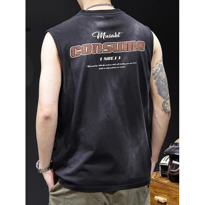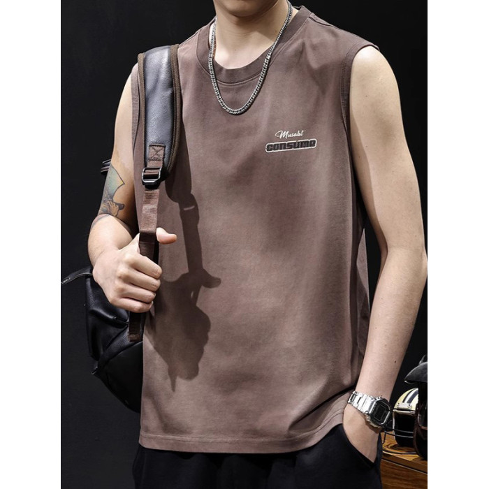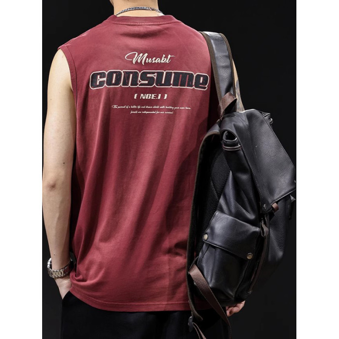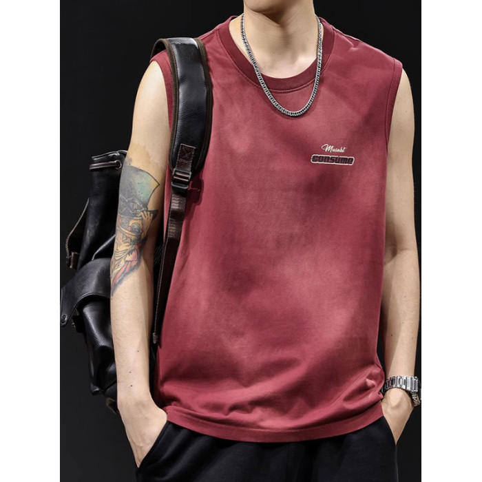 倉石一樹2025新款美式漸變背心男士t恤坎肩夏季運動健身大碼純棉