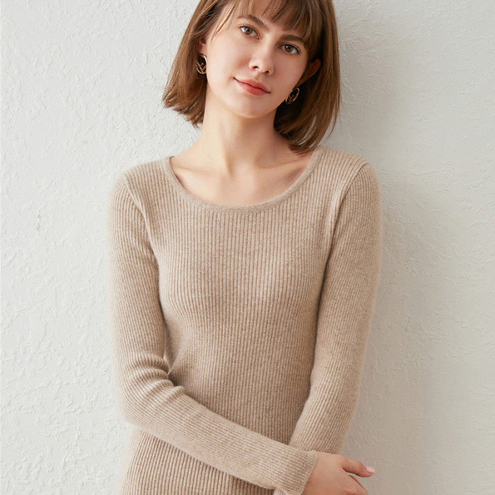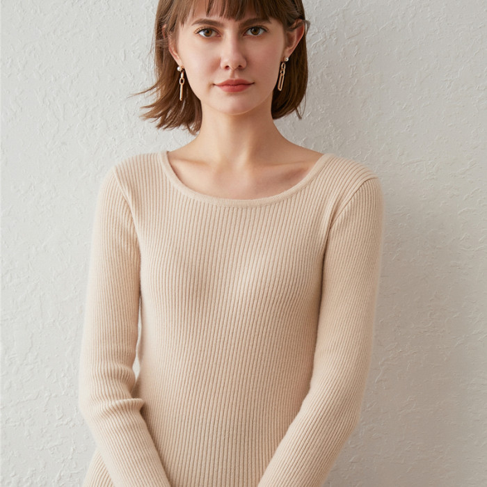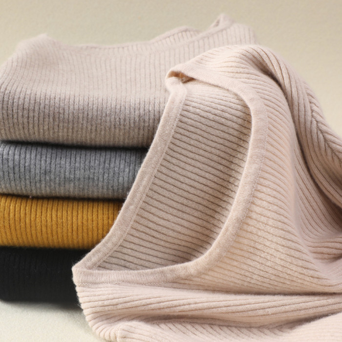 軟糯!低圓領毛衣女套頭春秋冬短款上衣黑白色針織打底衫修身內搭