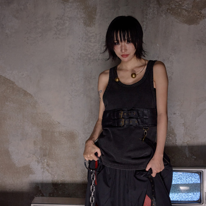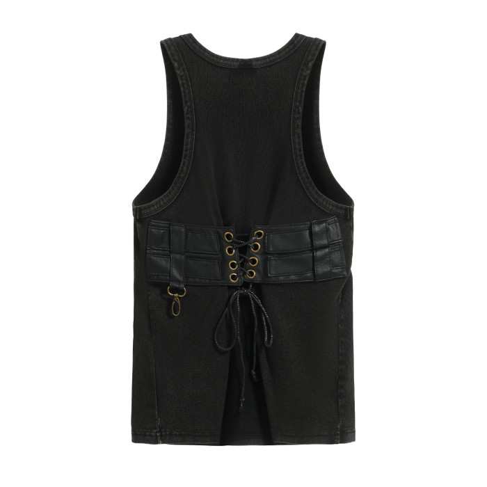 NOTHINGNESSWORLD W1/燕尾鏤空原創設計做舊水洗夏日背心