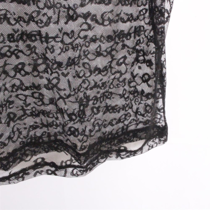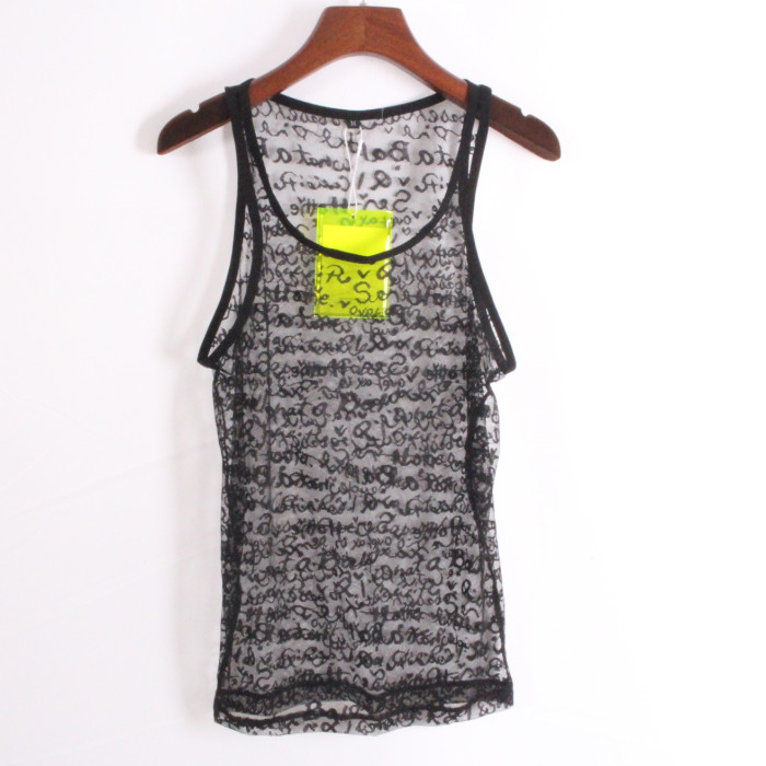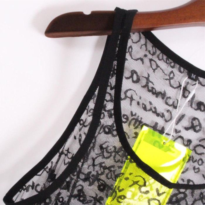炸街春夏新款黑色鏤空網紗設計感網眼字母美式性感無袖上衣男背心