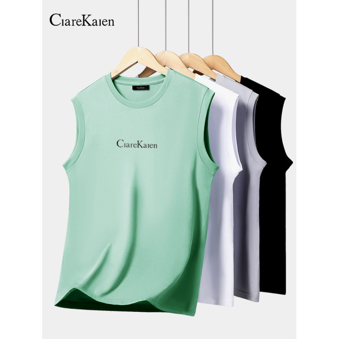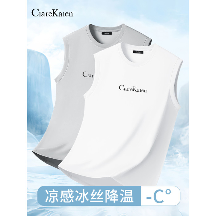 Clare Kalen官方夏季冰絲無袖背心T恤男士運動速乾坎肩2025新款潮