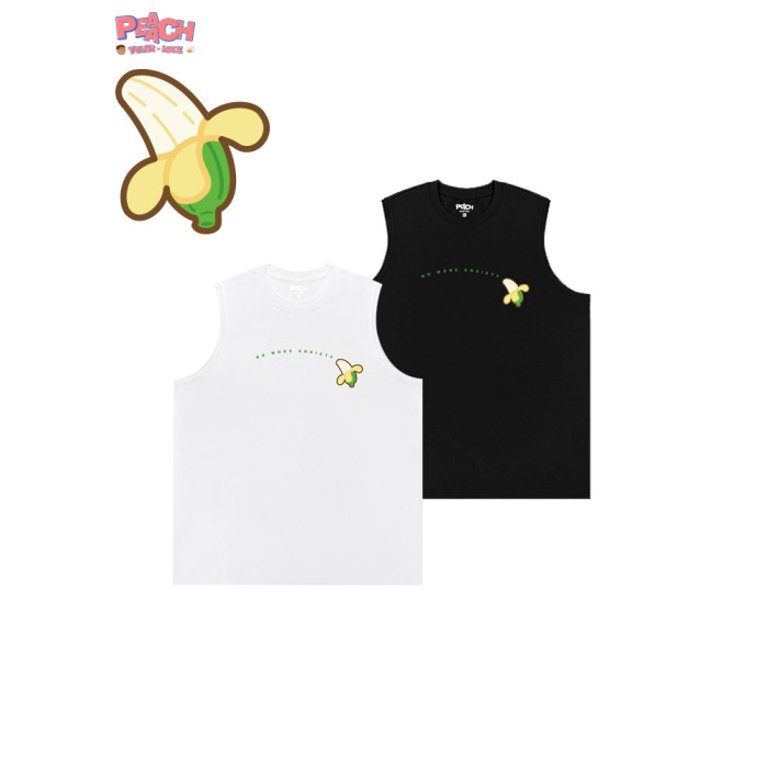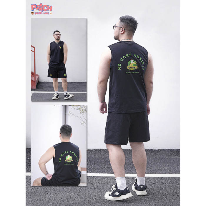 PEAACH日系復古圓領寬松休閒大碼背心坎肩美式重磅純棉無袖T恤潮