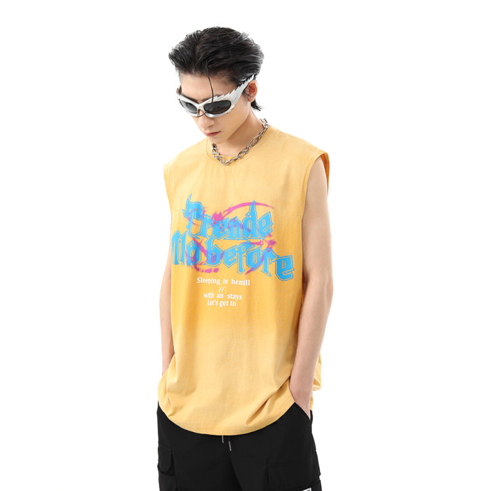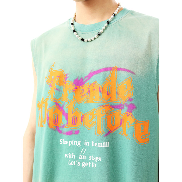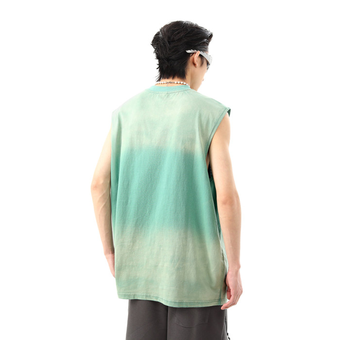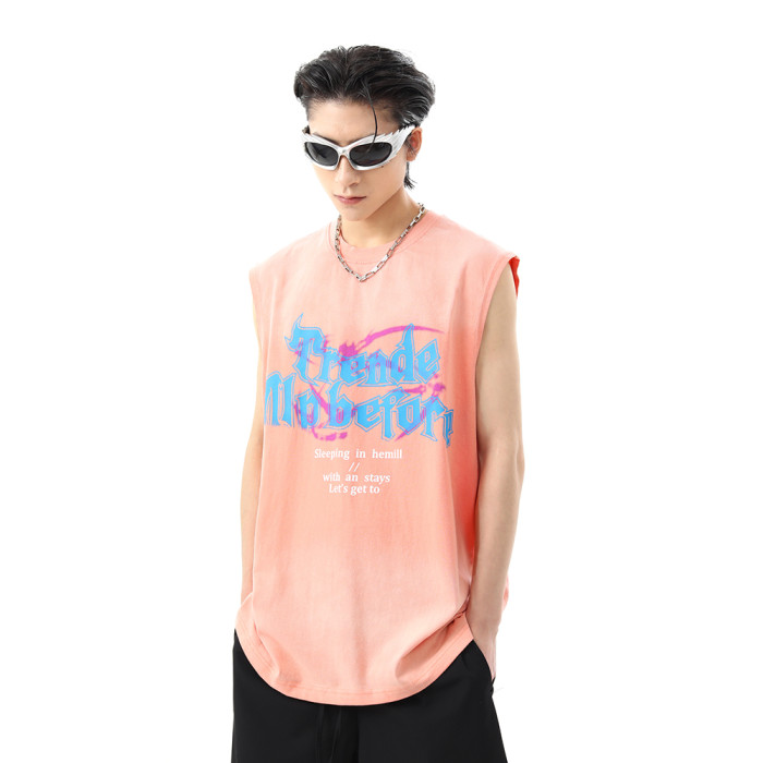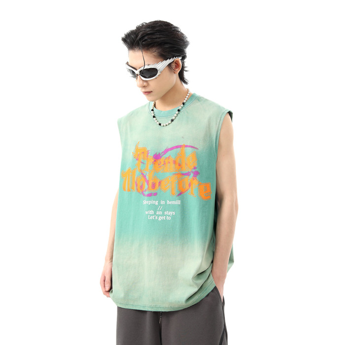潮街區 多巴胺紥染漸變無袖t恤男女情侶夏季外穿寬松坎肩背心上衣