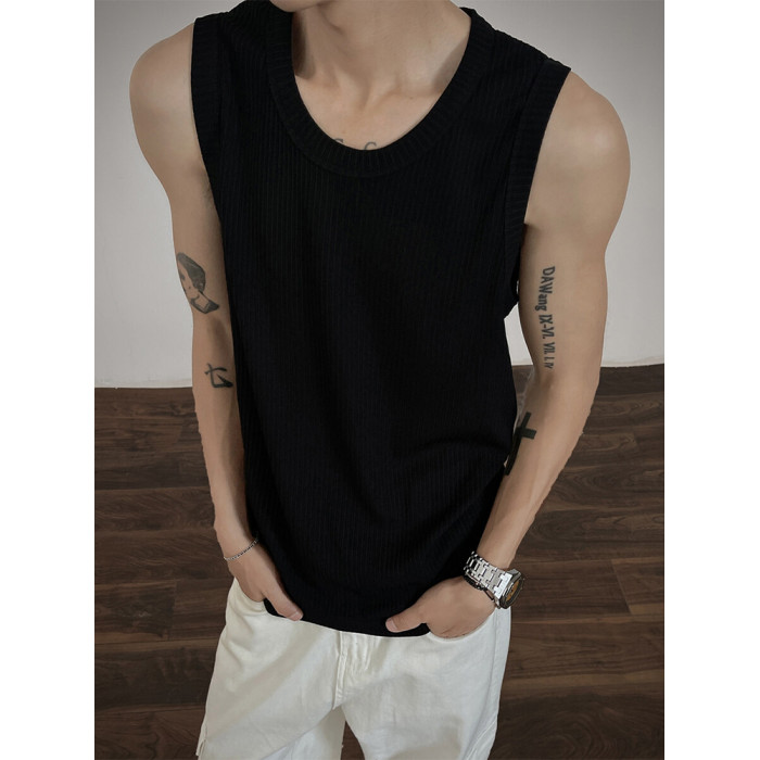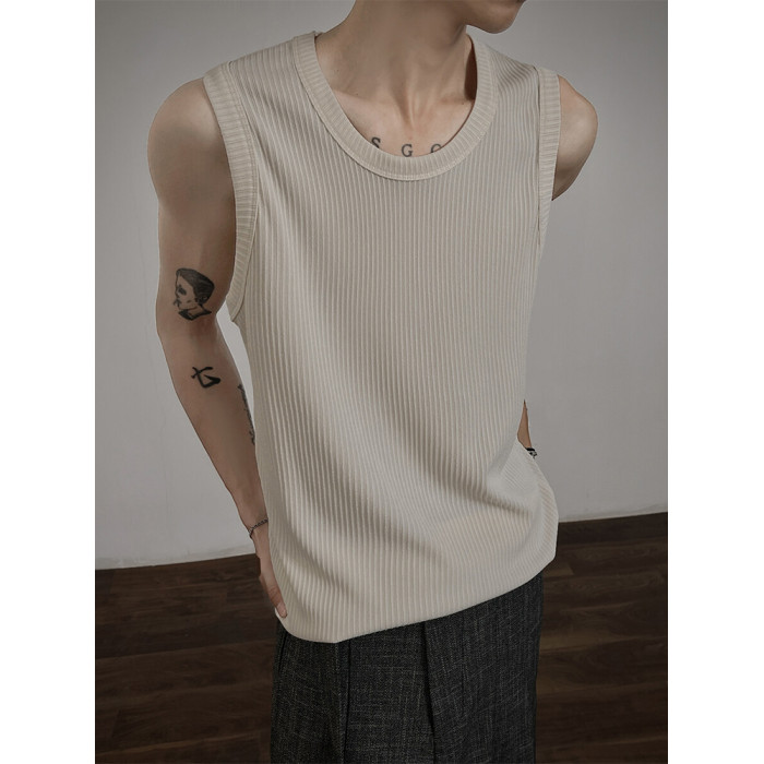 cleanfit老錢風肌理感冰絲背心男款夏季薄款健身運動無袖t恤汗衫