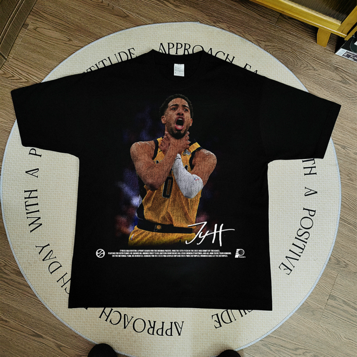 MUC哈利伯頓T恤美式高街重磅球星印花短袖籃球純棉訓練復古背心