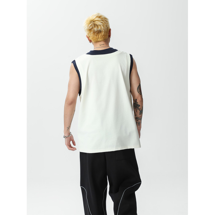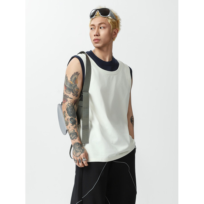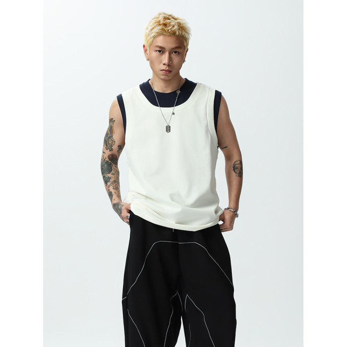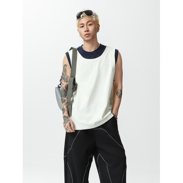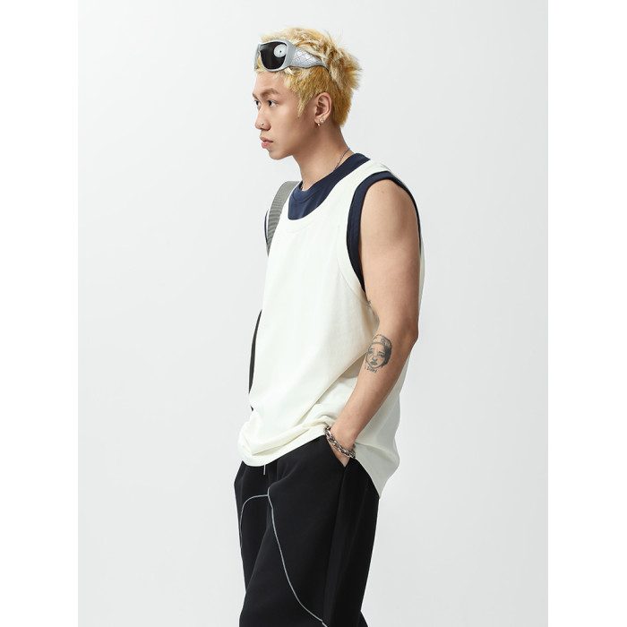 潮牌假兩件拼接設計感坎肩背心男款夏季潮流痞帥健身上衣無袖T恤