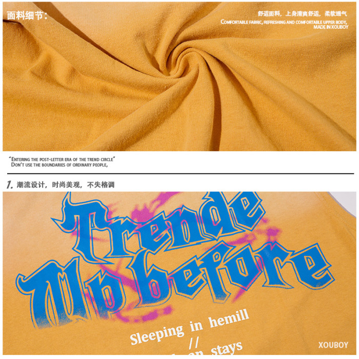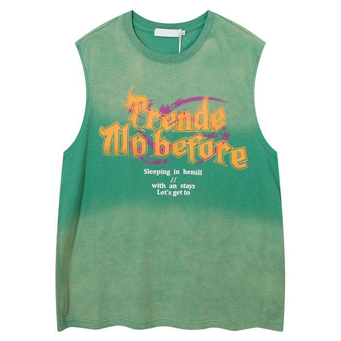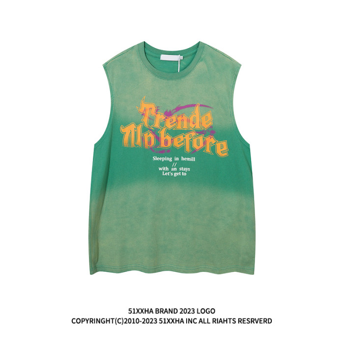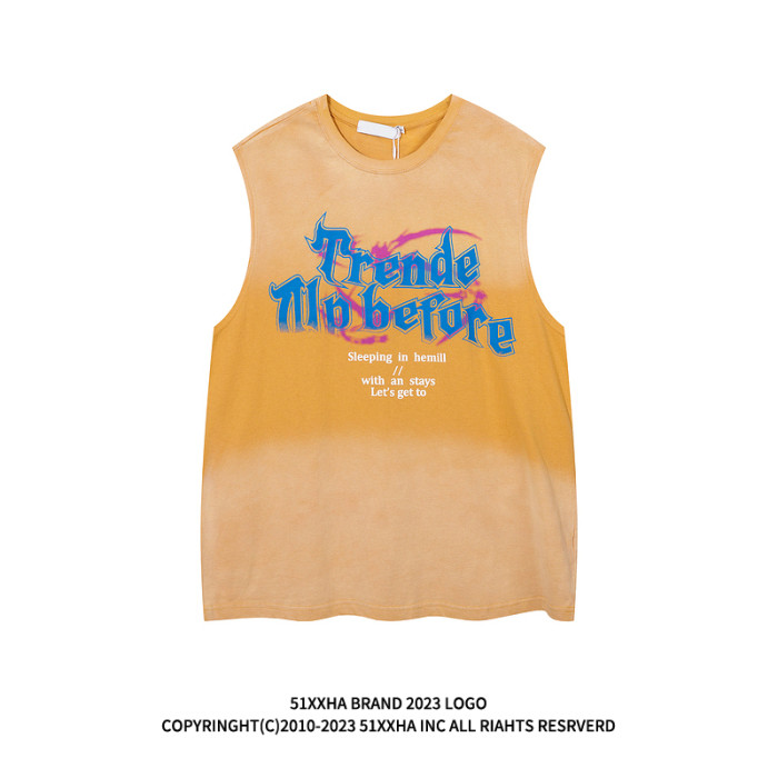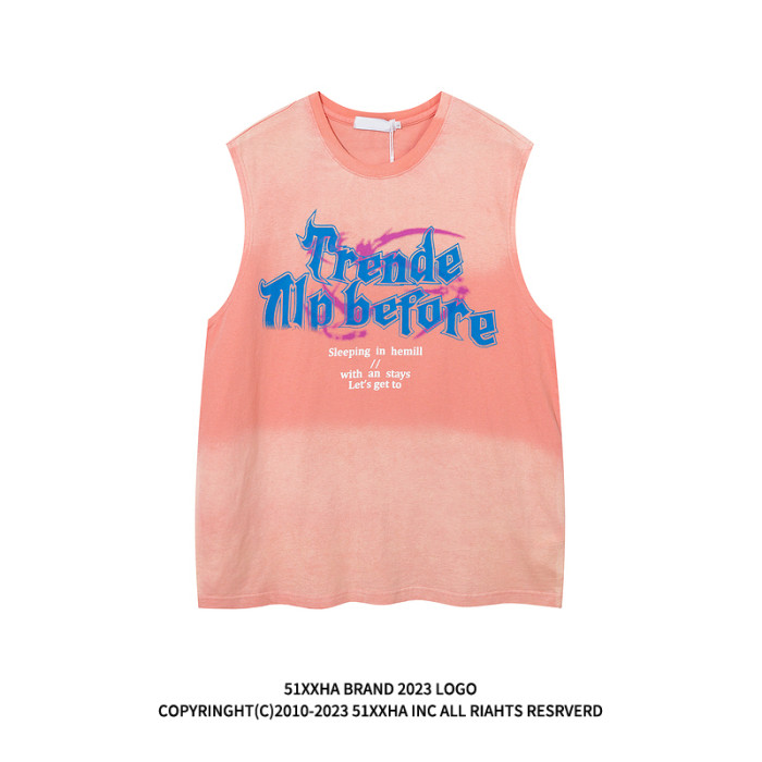 51嘻哈夏季多巴胺漸變紥染印花無袖T恤男女ins設計感寬松背心外穿