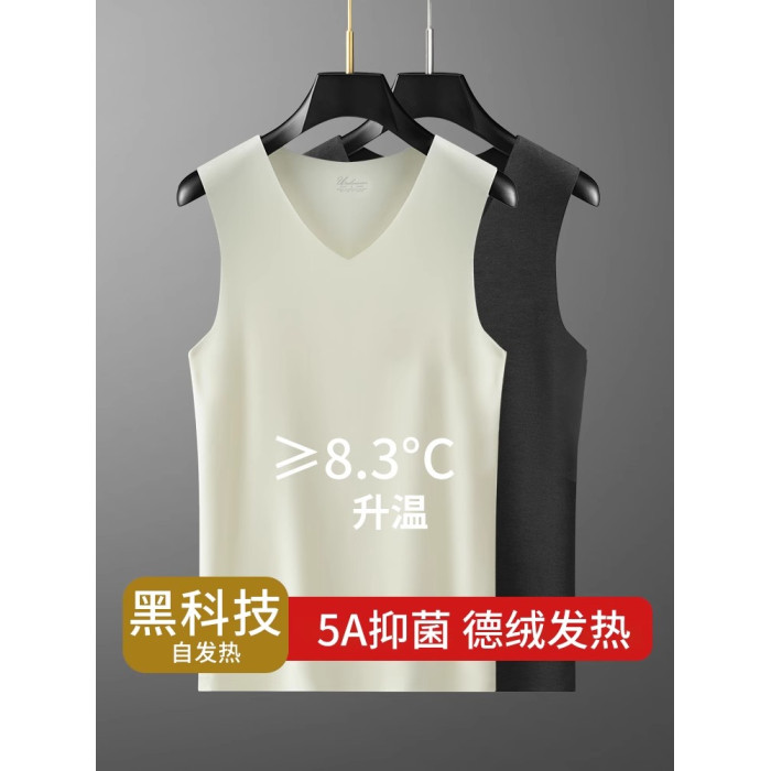 保暖背心男士5A抗菌 無痕髮熱德絨恒溫內穿冬季單件打底上衣內衣
