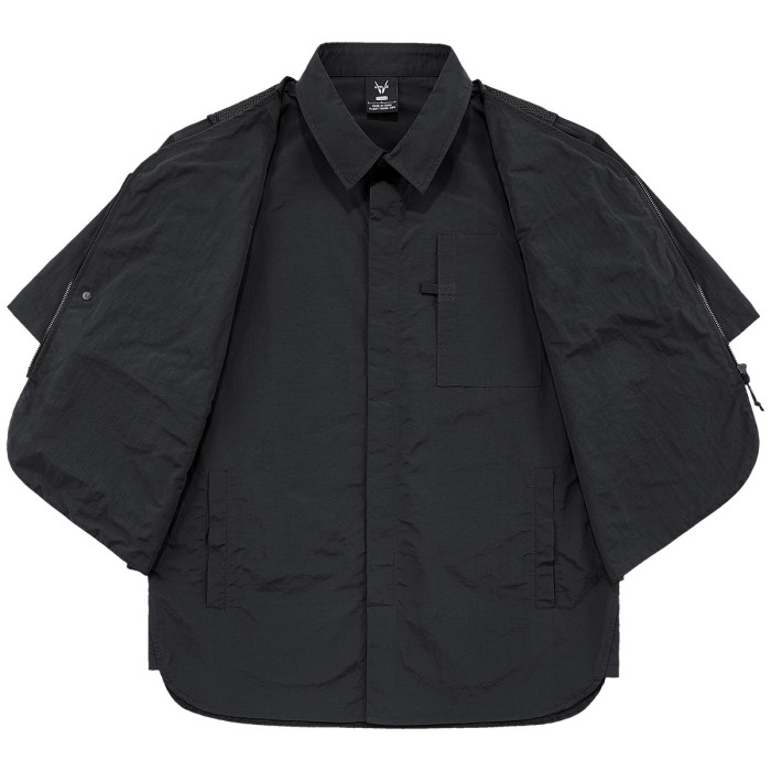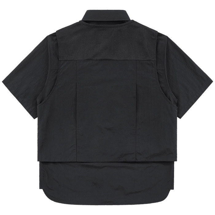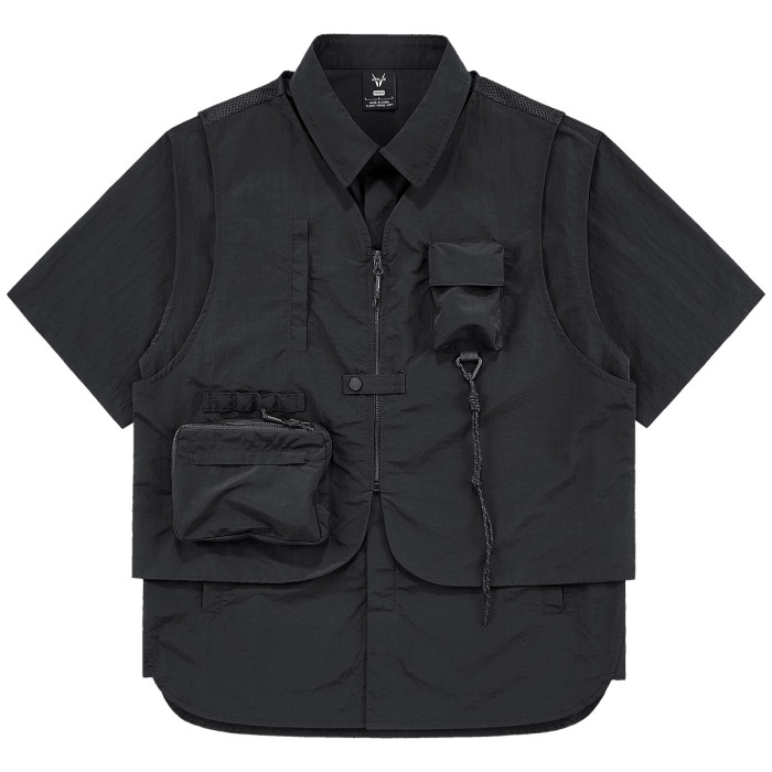 VIP假兩件工裝短袖襯衫男夏季寬松曡穿馬甲拼接設計感高級襯衣潮