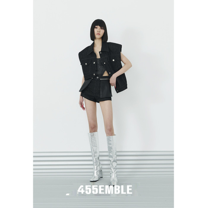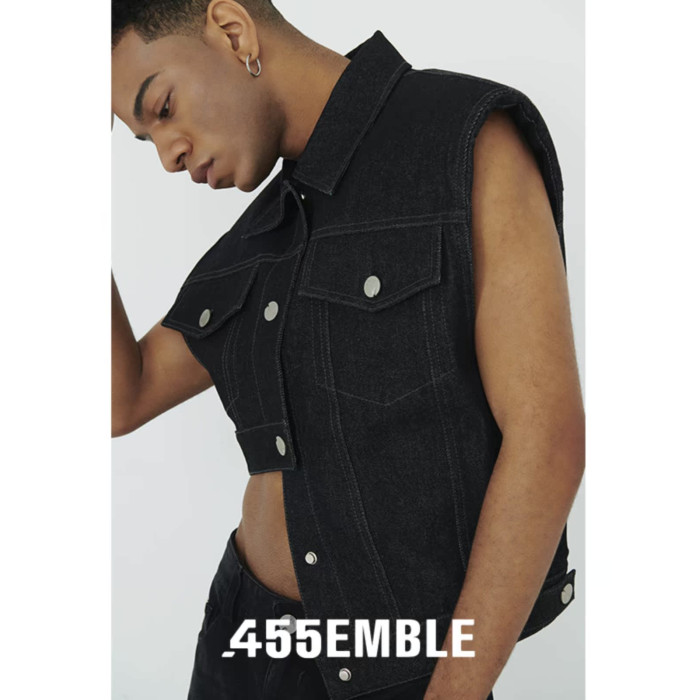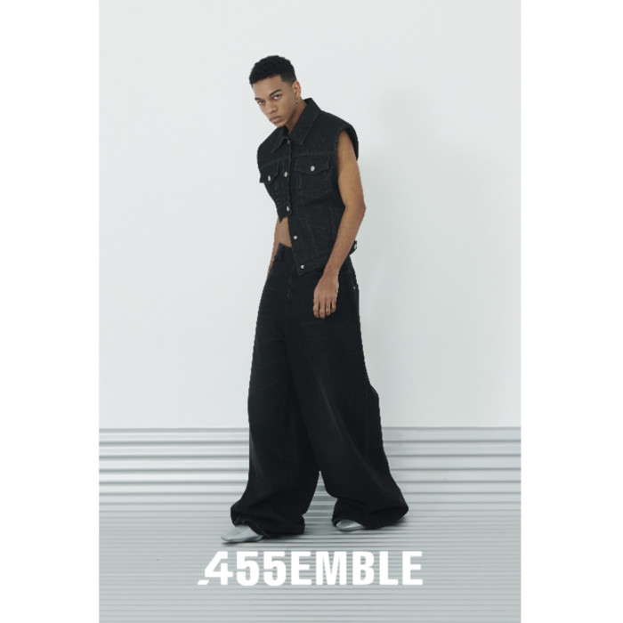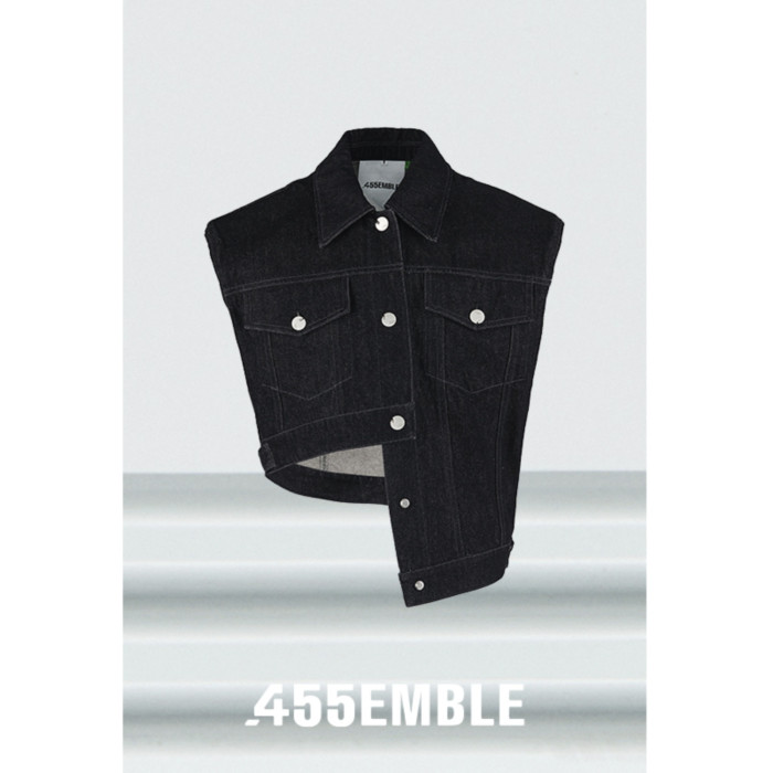 455EMBLE|披荊斬棘 藍正龍同款 不對稱立體褶皺牛仔馬甲外套秋冬